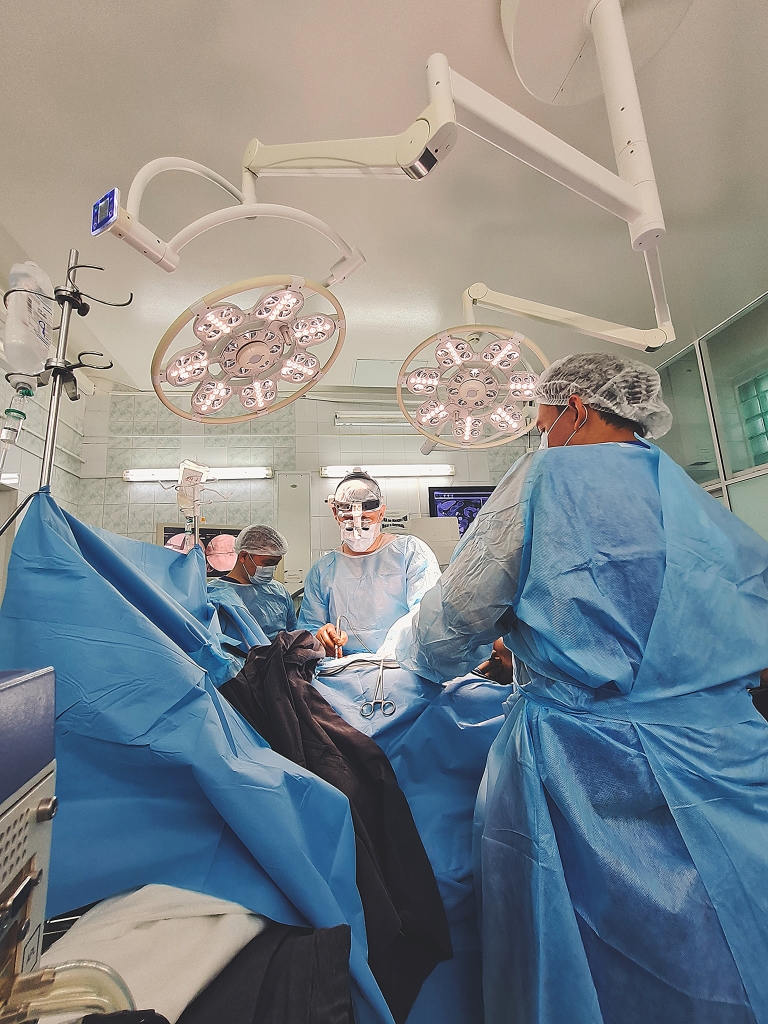 Хирургическая бригада работала в операционной около 10 часов. Под контролем анестезиолога Павла Трусова хирурги удалили невриному тотально, в одну сессию.